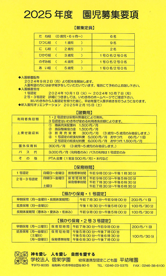 幼保連携型認定こども園/平幼稚園 入園のご案内